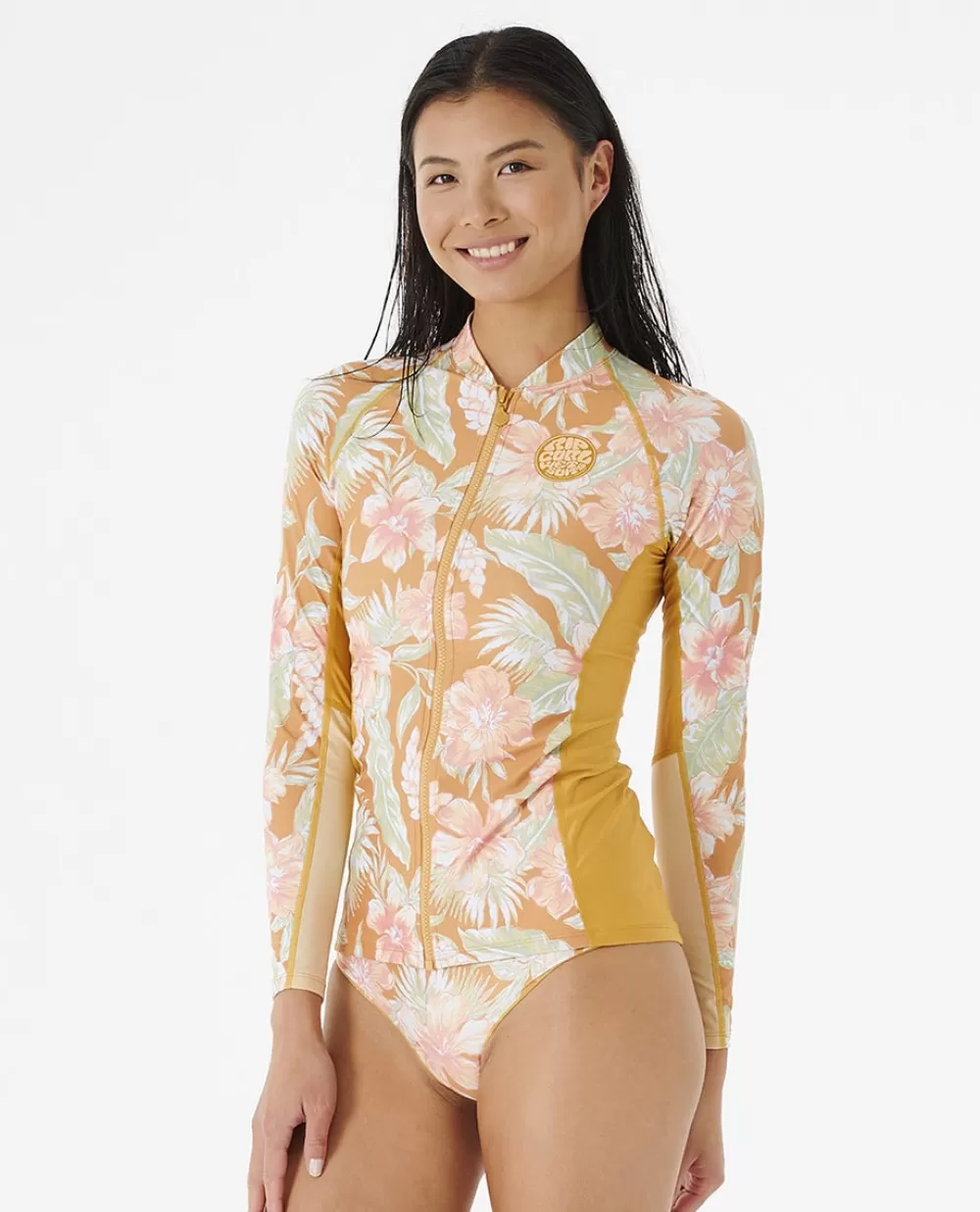 O Always Summer UPF50+ manga comprida com fecho de correr é uma camisola em rash brilhante e divertida. Modelo feito co…